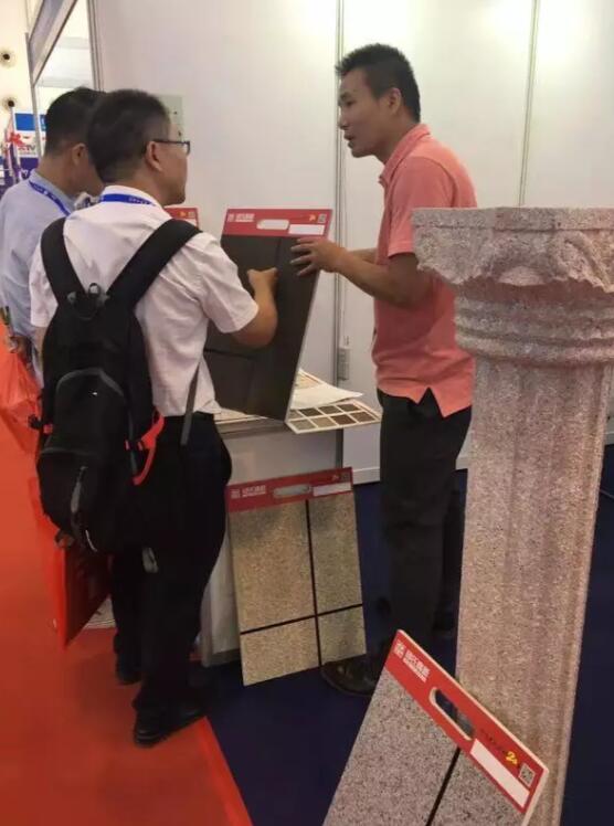 本次展会上,邱氏高新团队向来往商客宣传推介了邱氏“钻丽”系列的主要产品,并展出了最新工艺外墙美彩石漆。将美彩石漆喷涂在定制模型上,既可模仿天然花岗岩高档石材的花纹及颜色,又可按用户要求组合创新,其饰面仿真度带来的返璞归真自然感受,令来往客商驻足欣赏,深入了解。